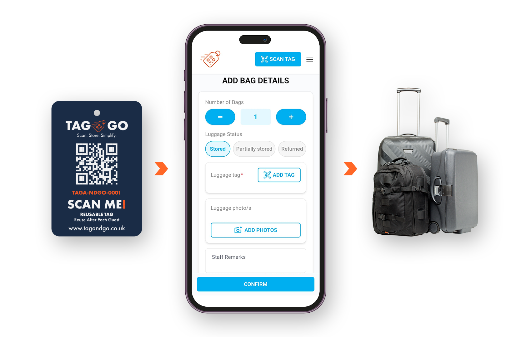 TAG & GO is designed to work in 3 simple steps: